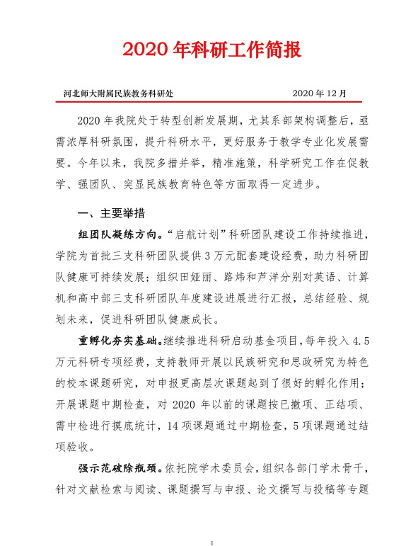 2020年科研工作简报