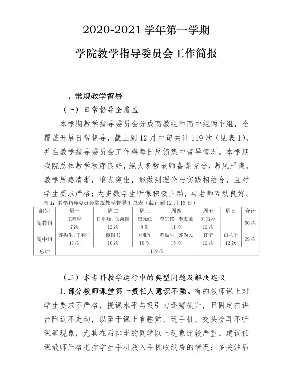 2020-2021学年第一学期学院教学指导委员会工作简报