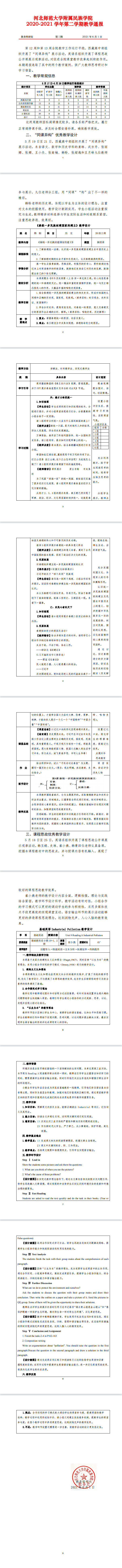 2020-2021 学年第二学期教学通报
