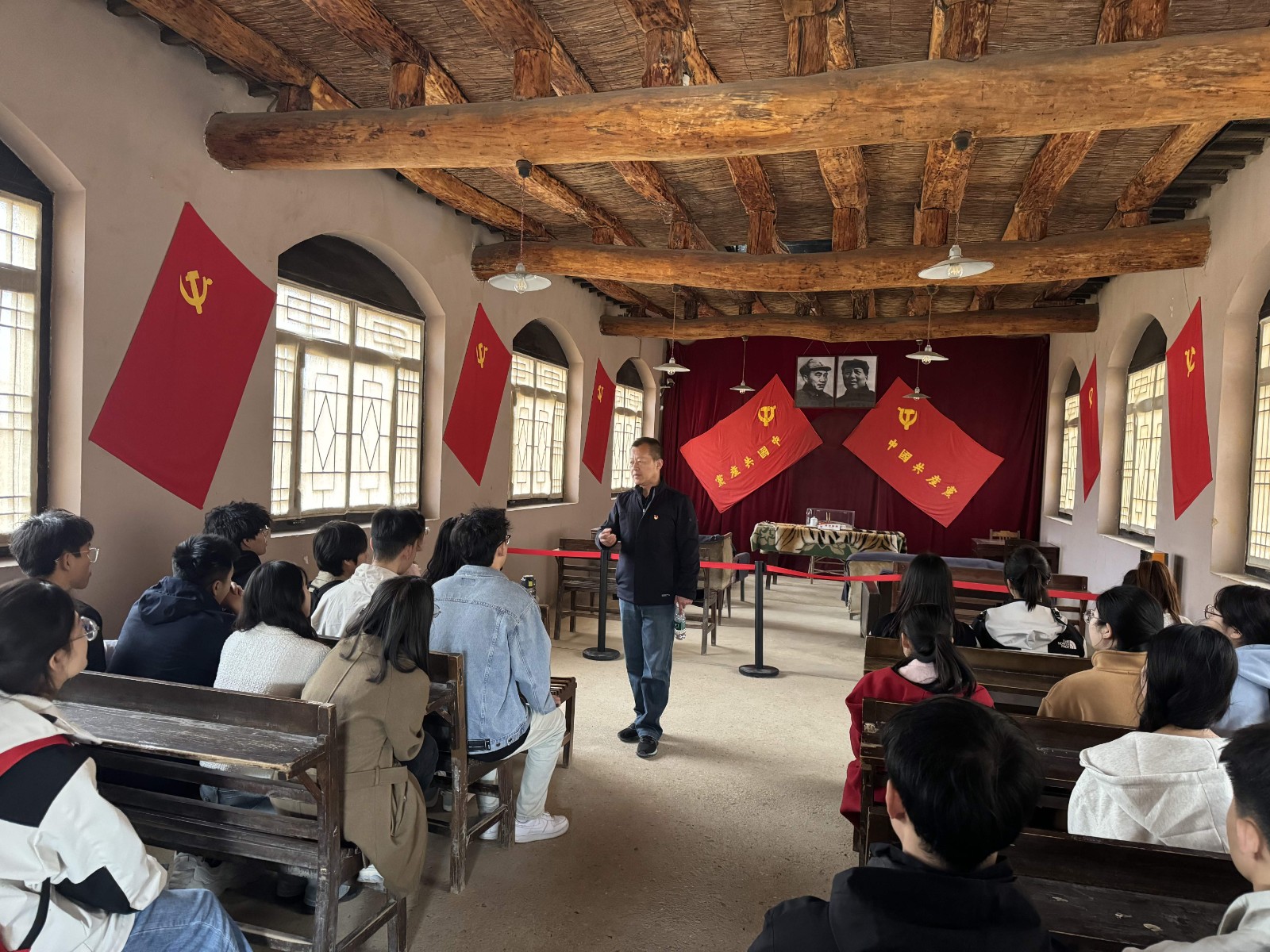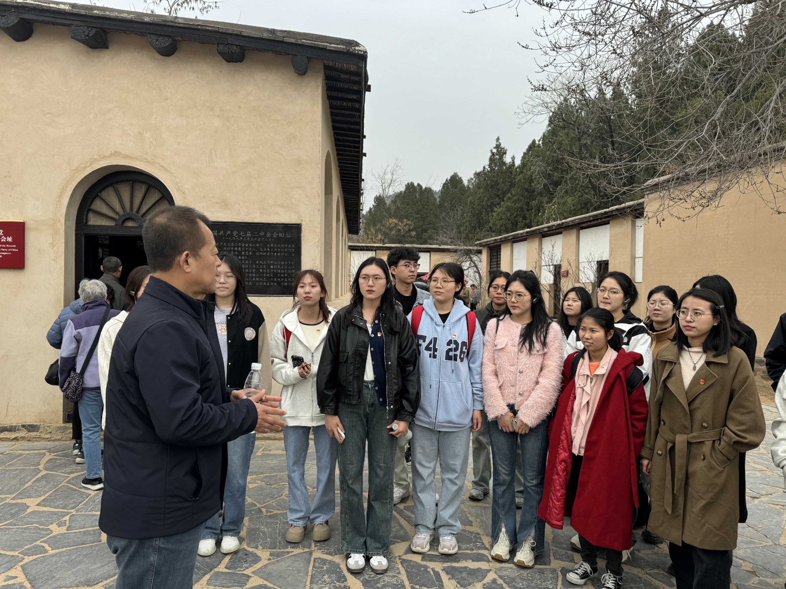 追寻红色足迹,感悟历史使命。在西柏坡中共中央旧址,师生一同参观了毛泽东、朱德、刘少奇、周恩来、任弼时、董必武同志的旧居,通过一件件陈旧、简陋的生活实物,感受那段峥嵘岁月。在中国共产党七届二中全会会址,刘森院长为师生上了一节生动的党课。刘森院长深入、细致地讲解了七届二中全会的召开时间、会议内容、重要意义。他指出,75年前党中央和毛主席就是从西柏坡动身前往北京,踏上“赶考路”,从此开启建国大业。今天重走赶考路,希望学生党员能够追寻红色足迹,感悟历史赋予当代大学生的使命和责任,时刻牢记“两个务必”,保持奋进姿态。