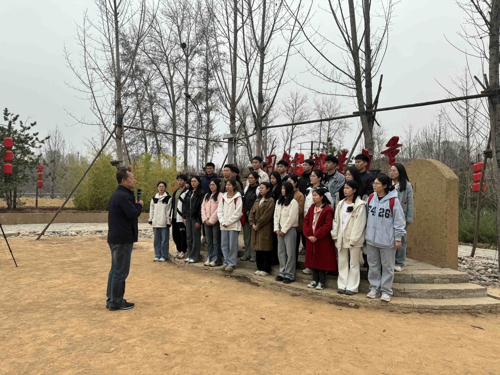 团结就是力量,唱响时代篇章。平山县西柏坡镇北庄村,毗邻革命圣地西柏坡,是典型的抗日模范村。在此,牧虹和卢肃两位文艺青年创作了小型歌剧《团结就是力量》,体现了八路军和老百姓团结一致,奋勇抵抗日寇侵略的决心。如今的北庄村,一派欣欣向荣新农村的景象。刘森院长在此带领学生党员唱响《团结就是力量》。他强调,青年一代要有坚定的理想信念和组织纪律,将“小我”融入“大我”,牢记使命、团结奋进,为祖国献出民院青春力量。