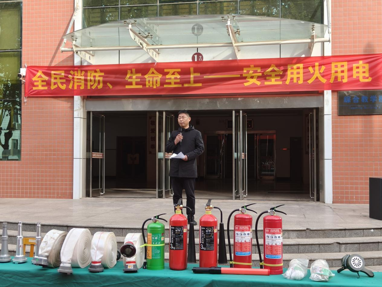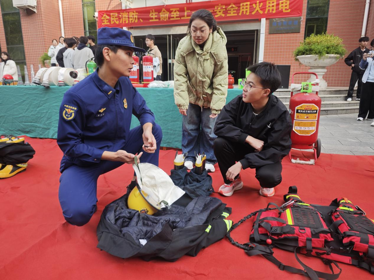 11月9日,时值全国消防宣传日,jdb电子于民族广场成功举办“校园消防安全嘉年华”活动。学院党委书记白少双出席活动并致辞。桥西区消防大队消防员黄兴杰、曹秦培现场进行演示指导,400余名师生代表通过沉浸式体验、互动式学习及模拟实操演练等方式积极参与。