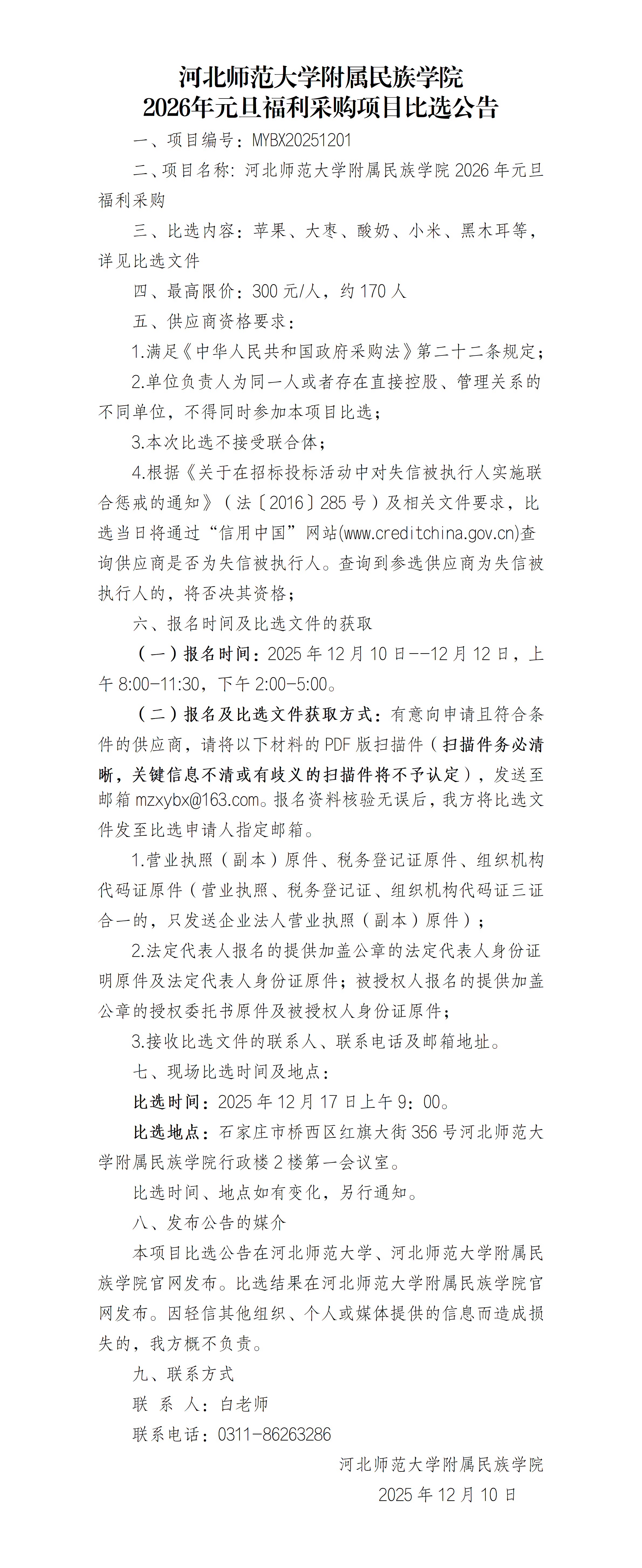 jdb电子中国官方网站2026年元旦福利采购项目比选公告