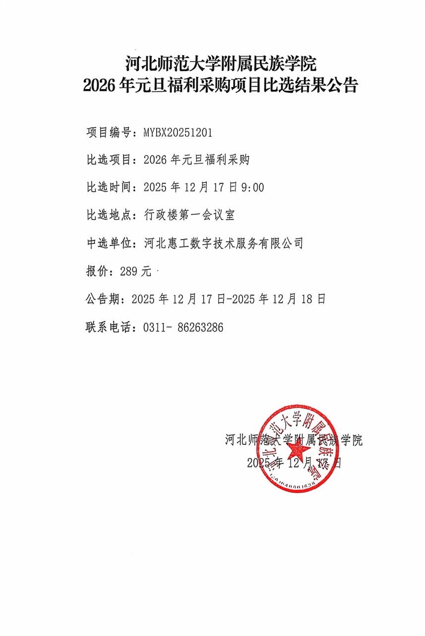 jdb电子中国官方网站2026年元旦福利采购项目比选结果公告